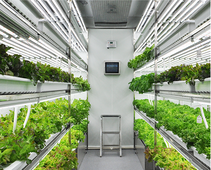 CyberFarm®植物工厂是按照清洁生产理念设计的密闭式立体栽培系统,该产品基 于新型节能高效1^日0灯具作为人工光源,利用密闭式围护结构和循环式层流通风使得室 内环境均匀,从而实现优质叶菜、药草、种 苗的周年计划性稳定生产。该系统能够实现 定销定产的工业化植物生产,即每天播种、 每天米收的周年稳定局效生产。